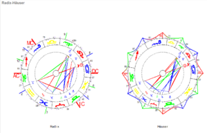 Das Häuser Horoskop verbindet Mars und Uranus mit den drei Persönlichkeitsplaneten. Hier eröffnet sich die Fähigkeit, kollektive Erfahrung intelligent und absolut zeitnah zu nutzen. Es geht ja um eine gesellschaftliche Entwicklung, die zu fördern ist. So kann konstruktiv