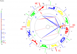 Sein Horoskop finden Sie in diesem Beitrag unter Radix-Vergleich: Amtseinführung D. Trump