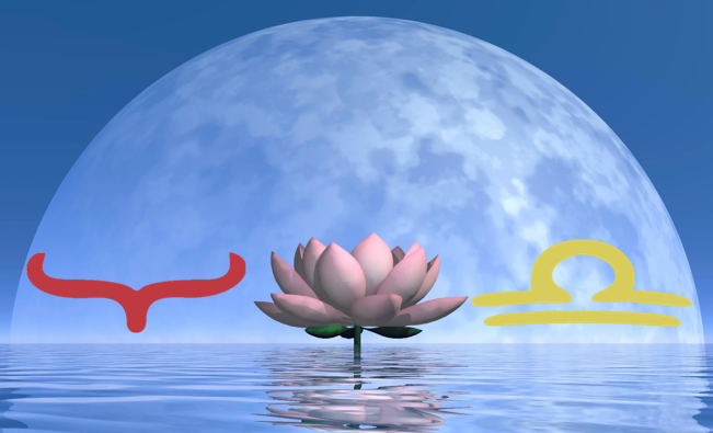 …zu Beginn der Widder Zeit war auch Vollmond (auf 1°). Nun zum Ende der Widder Zeit ist erneut der volle Mond an der Grenze von Waage, diesmal auf 29°.