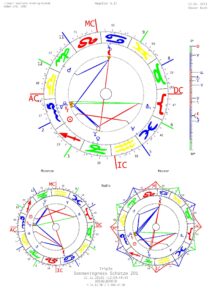 Sonneningress Skorpion 23.10.2013, 08.10‘.30‘‘ Uhr Düsseldorf Radix (Anlagen-Chancen) Das Bild liegt auf dem 7. Strahl (Zeremonielle Magie, Rythmus und Ordnung). Neubeginn bei K1 direkt nach dem AC. Viele verschiedene Motivationen