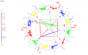 Die wichtigen Planeten Sonne und Mond stehen ebenfalls beinahe losgelöst, über die latente Verbindung zu Neptun konnten sie keinen Einfluss gewinnen. Sie sind sich auch nicht einig und mit Entweder – Oder Gedanken und Empfindungen beschäftigt. Das könnte damit zusammen hängen, dass die Angelegenheit überstürzt forciert wurde, oder?