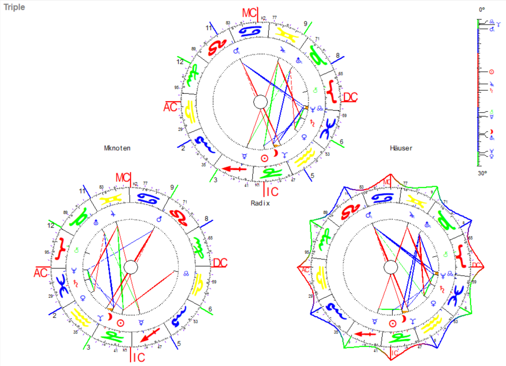 Wie immer liegt die Steinbock Sonne beim IC und die kardinalen Zeichen stehen „auf dem Kopf“ an den Hauptachsen.