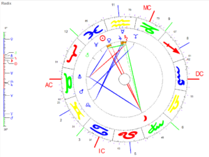 Die Persönlichkeitsplaneten (Sonne, Mond, Saturn – rot im Bild) sind zusammen mit Uranus in der Figur „Strömer“ verbunden.