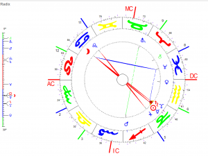 Mars-Uranus sind schwach bzw. latent durch Quinkunx verbunden, das fällt leicht auseinander. Handlungen bringen wenig Erfolg oder kommen sprunghaft, was unqualifiziert wirken kann.
