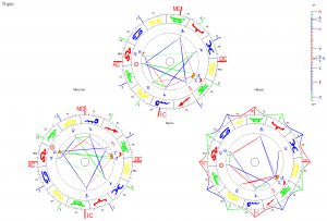 Die Trias Pluto-Mond-Mars zeigt sich im MKH in Haus 7. Also ist unbewusst der Glaube an Großartigkeit und Dominanz (über Partner aller Art, Beispiel für diese Denkweise: D. Trump) noch ungebrochen. Aber das ist unbewusst und das MKH zeigt die Vergangenheit, die in die Gegenwart zu integrieren ist.