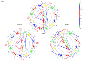 Da steht Saturn mit Venus und Mondknoten auf einem anderen Gleis: hier ist ein geradezu hierarchischer Anspruch auf Harmonie in Beziehungen und Erotik, das kann zwanghaft sein und Beziehungs-Partner unter Druck setzen, falls es -situationsbezogen- schwer zu erfüllen ist. Manchmal zeigt sich auch Scheinharmonie.