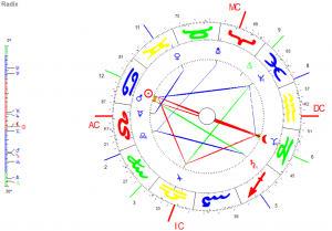 Das veränderlich-kardinale Aspekt-Bild liegt auf dem 4. Strahl (Harmonie durch Konflikt). Müssen wir ernsthaft immer Konflikte durchleiden um unsere Harmonie zu finden? Die waagerechte Ausrichtung scheint dies immer wieder im Austausch mit anderen zu bejahen.
