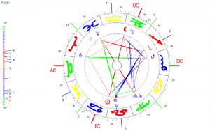 Die Individual-Achse ist mit 5 Planeten betont. Diese Nacht werden wir aktiv träumen und Macht/Ohnmacht Themen können sich zeigen. So gerne wollen wir als „Sieger“ gelten und stark sein, die latente Ambivalenz zeigt auch Aufruhr im Innern an, die innere Unruhe verstärken könnte.