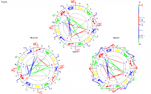Das Bild ist sehr ungewöhnlich, es hat 0° AC und 0° MC! Auf dem 7. Strahl (zeremonielle Magie, Rhythmus und Ordnung) wird eine klaren Regeln folgende Ordnung verlangt, mit dem Auftrag an den Löwen, sich mit ganzem Herzen ein zu bringen. Diese Konstellation verlangt eine Konzentration auf das Wesentliche im Leben (die fixen Achsen sind besonders betont, die kardinalen sind leer). Eine spezielle Richtung gibt sie nicht vor. Wir müssen die Richtung selbst finden.
