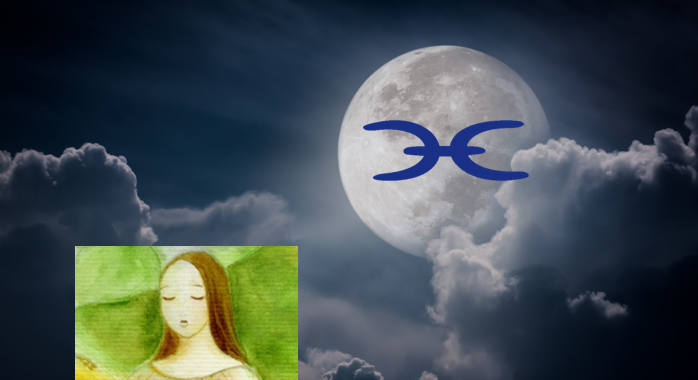 Beim September-Vollmond steht der Mond im Tierkreiszeichen Fische. Auf der Existenzachse sehen wir diesmal ein vertauschtes Bild mit Jungfrau im Rückzugsgebiet des 12. Hauses und Mond mit Neptun in Fische in Haus 6.