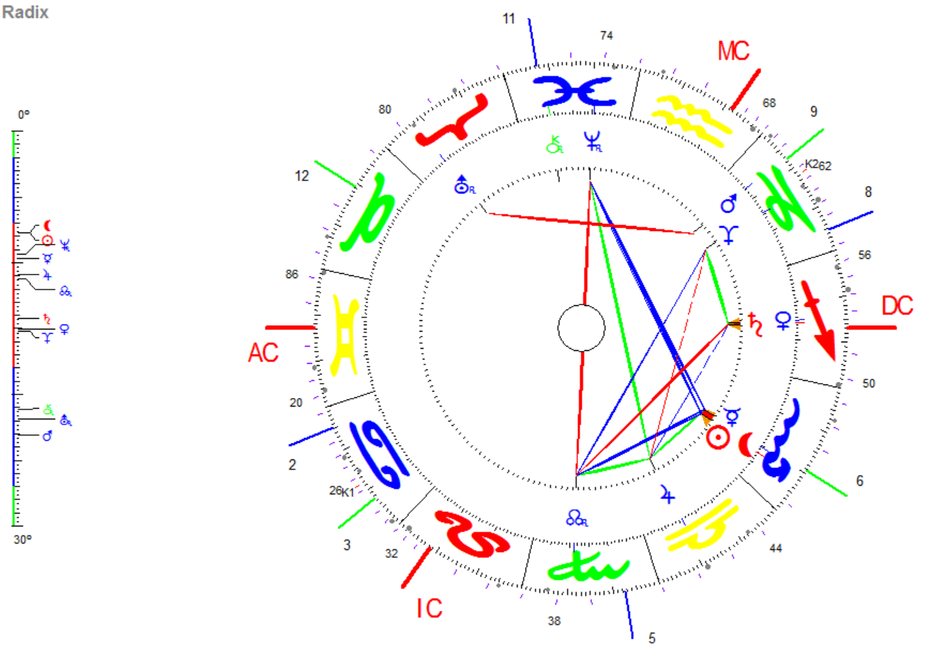 Jedoch stehen die wichtigen Persönlichkeitsplaneten an Hausspitzen und stark in den Zeichen, was eine optimale Energie-Ausrüstung bedeutet. Analytischer Verstand mit Bauchgefühl und gesundem Menschenverstand nehmen sich der Alltagsgeschäfte an. Intensive Arbeit widmet sich der Aufklärung von Missständen. Innere Kämpfe um Lösungen aus konflikthaften Arbeitsbedingungen mit dem Ziel, sich neu zu erfinden, sind ebenso zu erkennen.