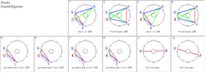 Beide dreier Konstellationen stehen im unbewussten Raum (1. Quadrant) aber in bewussten Zeichen. Hier findet eine Überschneidung von Interessen statt. Denn man glaubt ja, bewusst zu handeln und ist gehalten aus dem Unbewussten Erkenntnisse zu gewinnen, die dann erst das Bewusstsein verändern können.