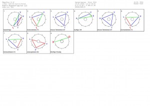 Das Aspektbild hier zeigt wieder Saturn, den Bewahrer oben und Mars arbeitet für das gleiche Ziel, aber hat manchmal andere Motivationen. Da aber Mond nun in 12 steht (Gefühle sollen nicht die Oberhand haben sondern die persönlichen Wünsche für sich behalten) und Jupiter in 1 (Erkenntnisgewinn und Weitblick drängen herauf) sowie Pluto in 9 (es geht um Übernahme persönlicher Verantwortung) erscheint es mir, als sind die unbewussten Antriebe nun auf Vernunft und Bewahren der Ordnung ausgerichtet. Diese Ordnung kann sich neu aufstellen, aber bleibt eine Ordnung. Geduld bewahren.