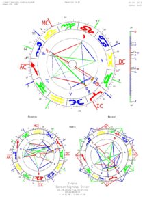 19.03.2013, 09.30 Uhr, Rom Radix Viele blaue und grüne Aspekte deuten wieder auf Sehnsucht nach Sinn und echter Spiritualität, aber es gibt auch Durchsetzungskraft, im innern sind Quadrate. Die Lagerung