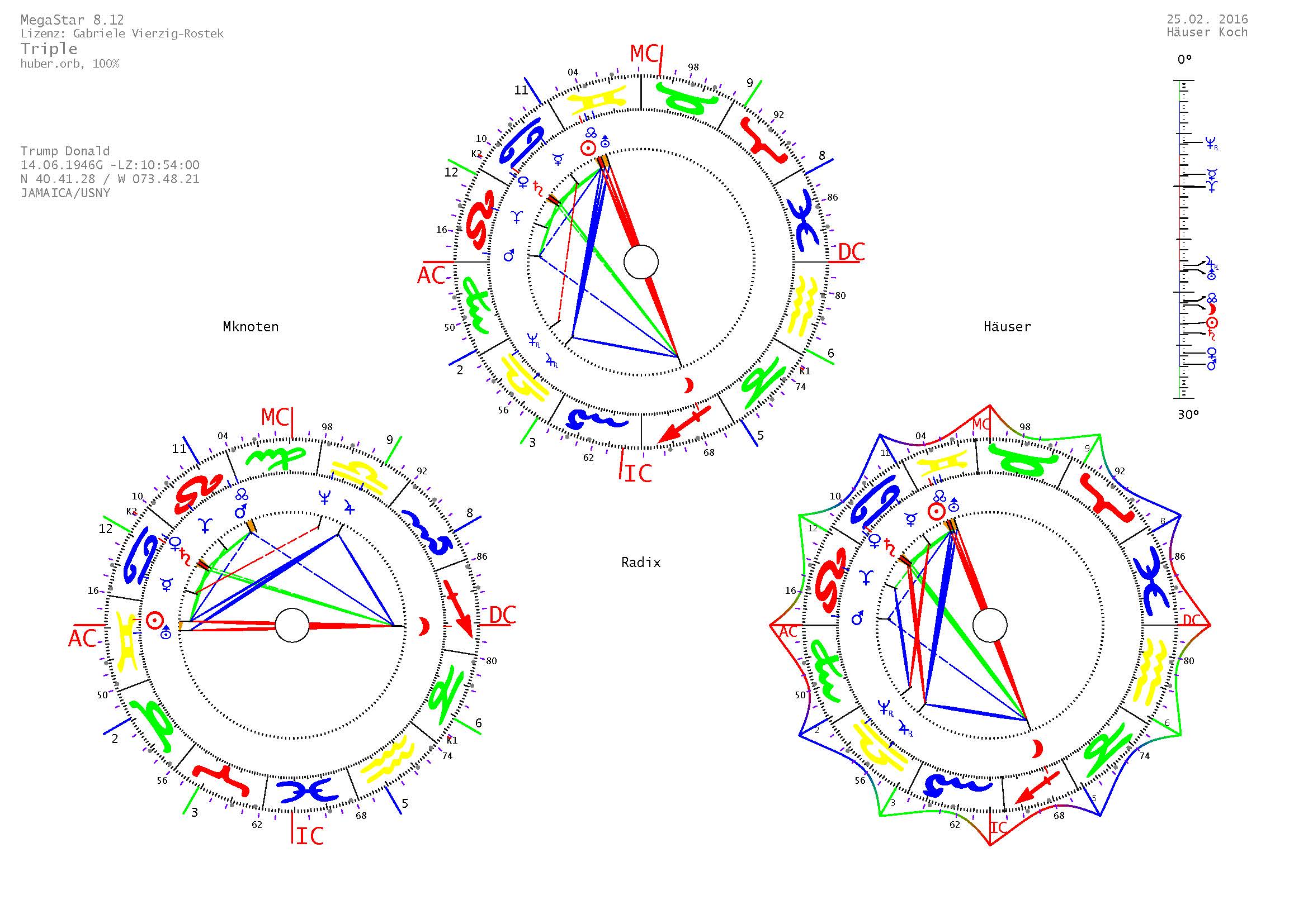 Ich finde Sie haben ihn sehr gut astrologisch dargestellt – nur Ihre Schlussfolgerung ist falsch, weil: Gerade so eine starke ICH Persönlichkeit, die sich nicht von anderen kaufen lässt ist genau das was die USA und uns (als amerikanischen Kolonie) noch retten kann. Da waren Sie wohl iin Ihren Schlussfolgerungen von der Lügenpresse beeinflusst, die in mehr als 3000 Artikeln noch kein einziges gutes Wort über ihn geschrieben hat !!!