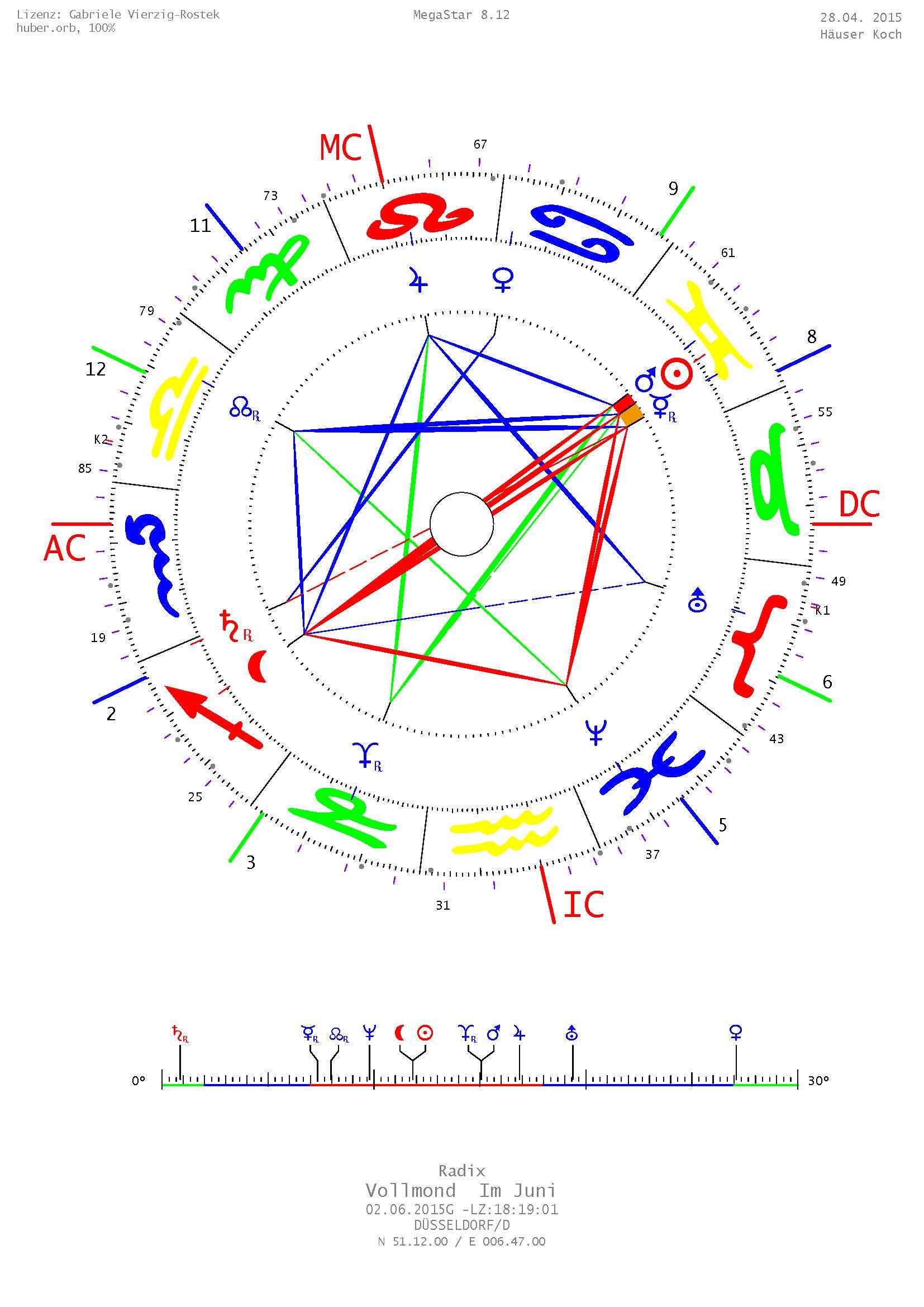 Und auf der Achse zwei-acht geht es darum, die eigene Substanz sinnvoll in die Gesellschaft einzubringen, das eigene Wertbewusstein in einen größeren Rahmen zu integrieren um daran zu wachsen. Der persönliche Status wird so ebenfalls gesichert. Dies ist wohl die wichtigste Aufgabe des heutigen Tages, denn alle drei Persönlichkeits-Planeten stehen auf dieser Achse.