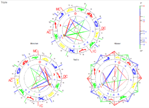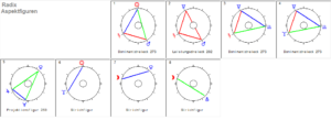 Das Bild ändert sich mal wieder deutlich. Auffällig ist das Thema doppelte Ambivalenz. Aus dem Leistungsdreieck mit Mars, Merkur und Saturn ist die doppelte Ambivalenz geworden, die der Mondknoten als Aufgabe stellt. Aber diesmal mit Pluto.