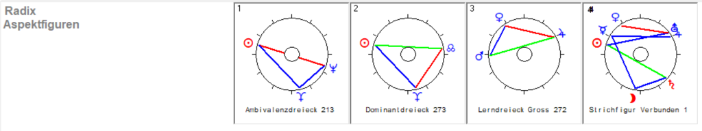 Das Aspekt-Bild in der Waage 2023 Radix ist großrahmig. Es ist veränderlich-kardinal und kohärent. Es liegt auf dem 1. Strahl (Wille und Macht). Dreiecke sind ambivalent oder zeigen Erfahrungen. Wer gewissenhaft authentisch bleibt, gewinnt auch Erkenntnisse, braucht dafür aber den spontanen Kontakt zum DU. Striche betonen den Willen der Persönlichkeit, man ist aktiv, beharrt auf Anerkennung Eigenständigkeit, Selbstausdruck.