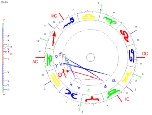 Das Aspekt-Bild ist senkrecht bis diagonal und veränderlich-kardinalen mit vielen blauen Linien, die Substanz versprechen und Kraft sowie Optimismus.