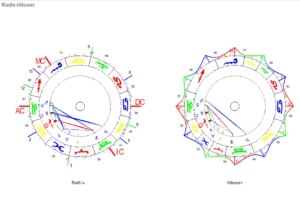 Im Häuser Horoskop sehen wir schon wieder drei losgelöste Elemente.