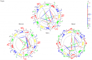 Die Zwillinge 2017 Radix ist zwar kohärent, jedoch ist die Verbindung der zentralen Reiz-Figur mit Neptun, Venus und Jupiter mit den übrigen ebenfalls recht latenten Figuren nicht ganz stabil. Sollten sich also Enttäuschungen (psychisch) oder Unwohlsein (psychisch und physisch) einschleichen, fällt die Verbindung Neptun-Mond auseinander. Das könnte immer dann passieren, wenn die Sehnsucht nach wahrer Liebe und echtem tiefen Verständnis nicht erfüllt wird (Neptun-Mond eingeschlossen in Haus 3) – die Venus am IC sehr offensiv im persönlichen Umfeld verlangt bzw. erwartet.