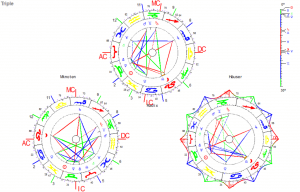 Wow, das Bild ändert sich sehr. Die einzige Konstante ist die Opposition Jupiter-Merkur, alle anderen Aspekte ändern sich. Mond bekommt suchende Eigenschaften. Sonne bekommt mehr aktive Einflussmöglichkeiten.
